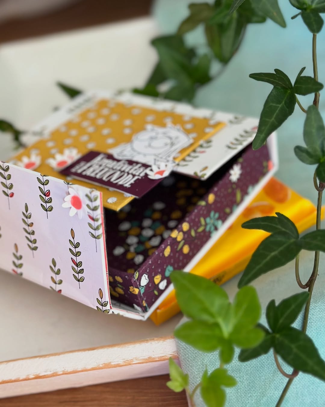 - Graupappe-Box für die bekannte quadratische Schokolade