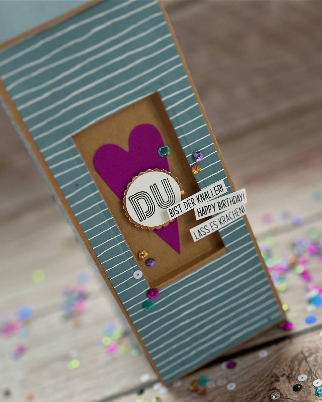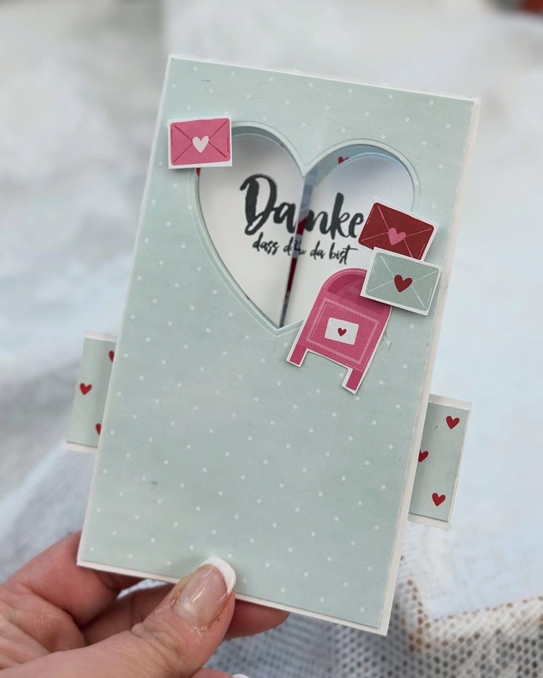 - Duo Explosion Karte mit Herz-Clip-Verschluss